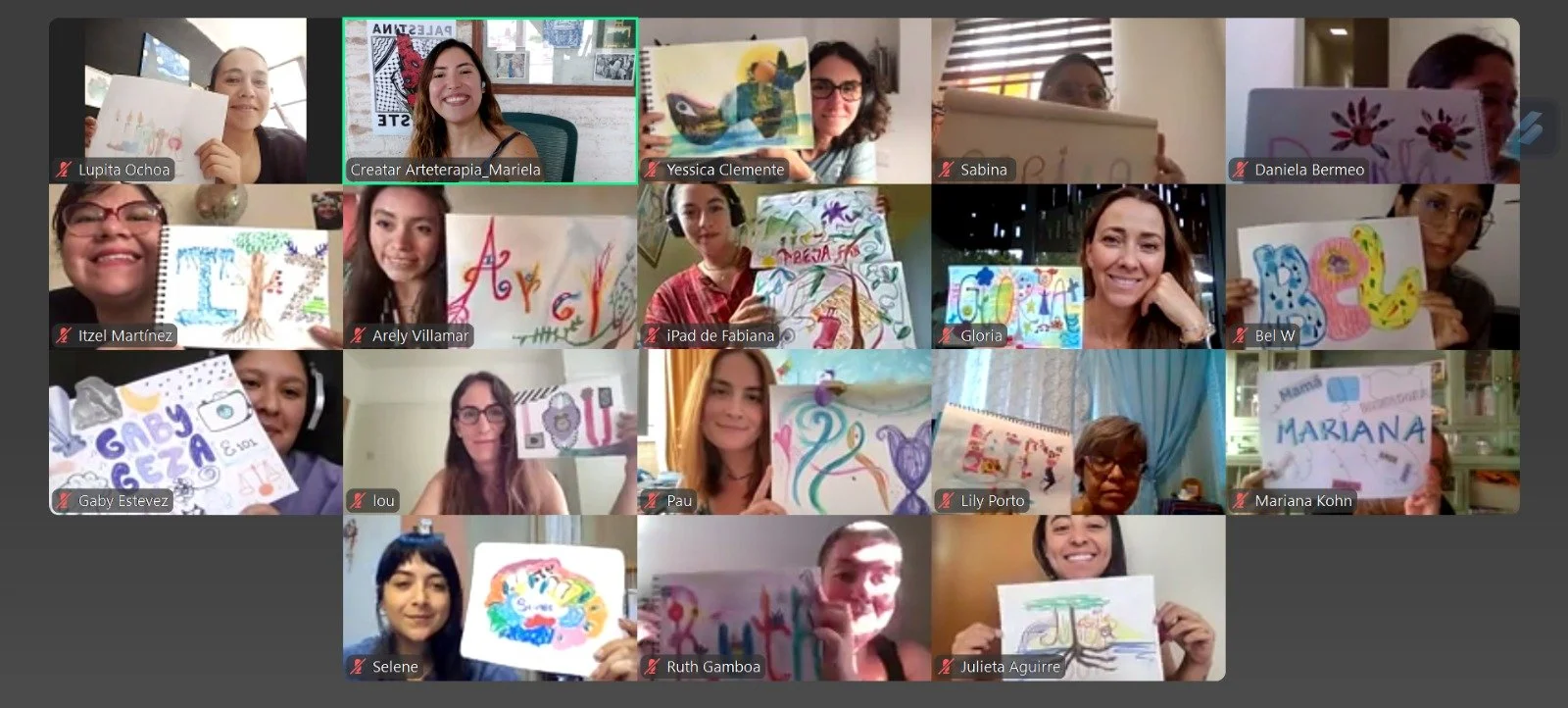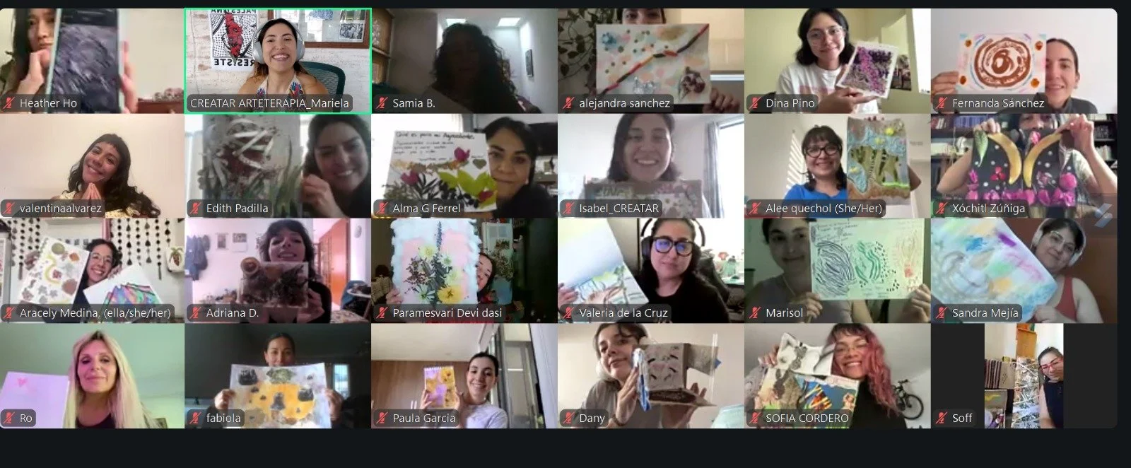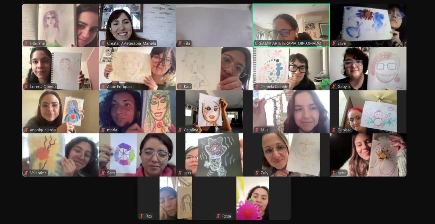 Todos nuestros encuentros son en tiempo real y no pregrabados, las actividades arteterapéuticas son tanto grupales como individuales.